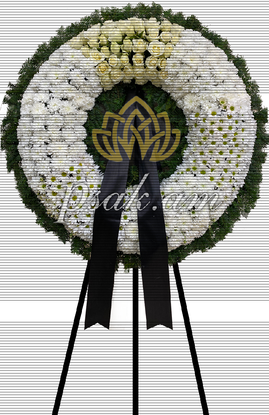 Ծաղկեպսակը պատրաստելիս օգտագործվել է ճապոնական տեսակի քրիզանտեմներ, Անտորիումներ, Գլադիոլուսներ, Լիզանտուսներ, Մոնասելաներ և այլ բացառապես թարմ և բանական ծաղիկներից։