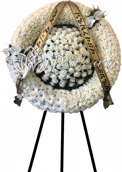 This gorgeous funeral wreath has 3 meters height. The wreath is arranged from 7 main bouquets. We have used Roses, Gerberas, Anthuriums, Callas, Alstroemerias, Canterbury Bells, Lisianthus and Chrysanthemums to create this beautiful wreath. If you want to order this wreath you need to consider that it takes 6 hour to create this wreath. Elit flower store will deliver this wrath for free. This is not any other wreath that can be compared with this wreath in his sizes, quality and style. You may order such wreath only in Elit Flower Store.