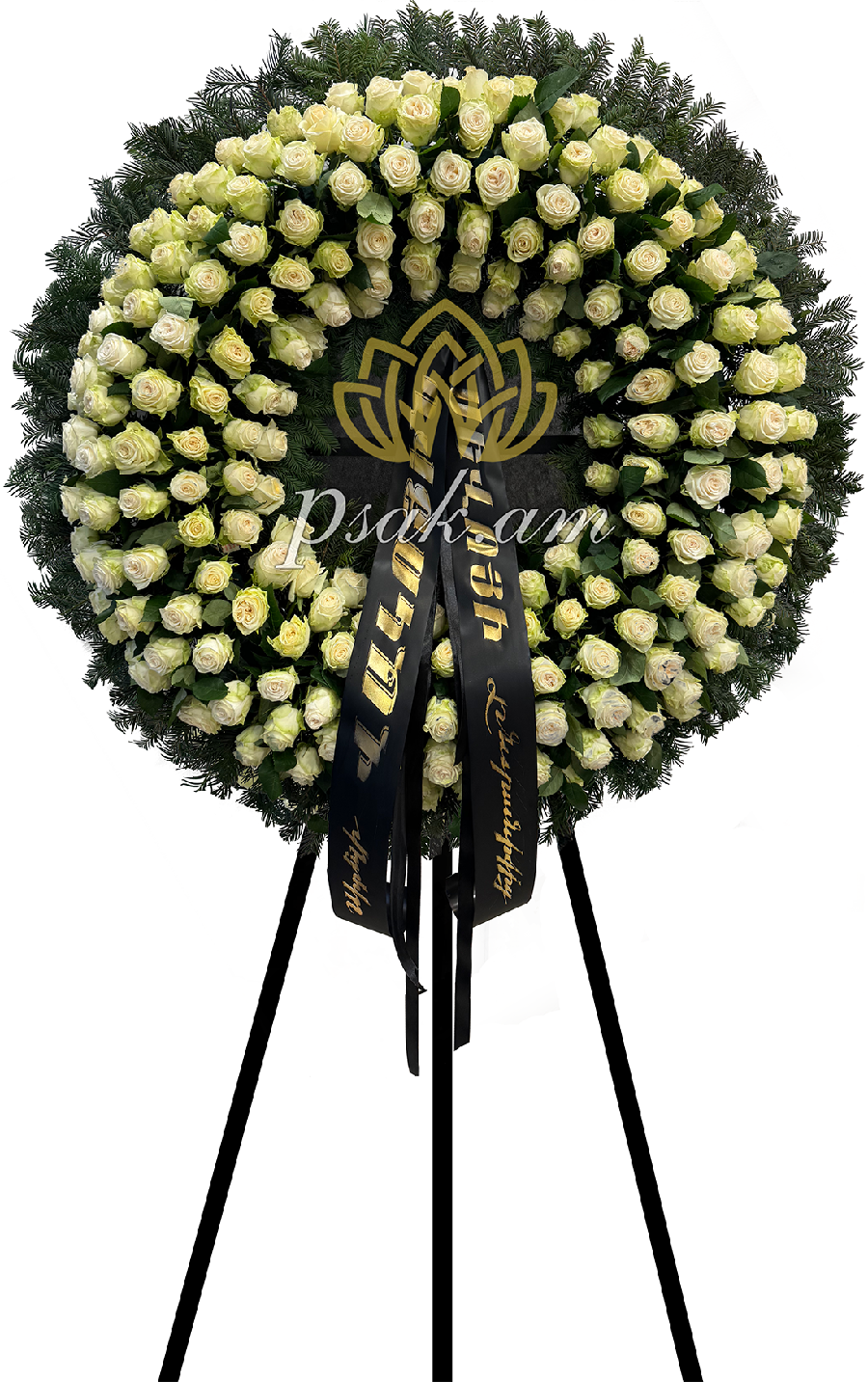 Պատրաստված է Հոլանդական Վարդերով և Անտորիումներով։ Ծաղկեպսակի մեջտեղում գնդաձև կոմպոզիցիա է հավաքված, որը պատրաստելիս օգտագործվել է 150 հոլանդական Ջումելի տեսակի վարդ։ Ծաղկեպսակի մյուս կոմպոզիցիան պատրաստելիս օգտագործվել է 30 սպիտակ անտորիում, Լիզանտուսներ և Վարդեր։